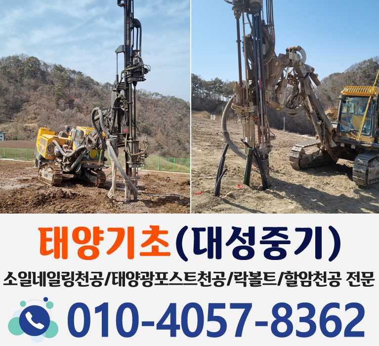 소일네일링천공, 태양광포스트천공, 쁘레카빈공천공, 할암천공전문, 락볼트천공, 태양기초(대성중기)