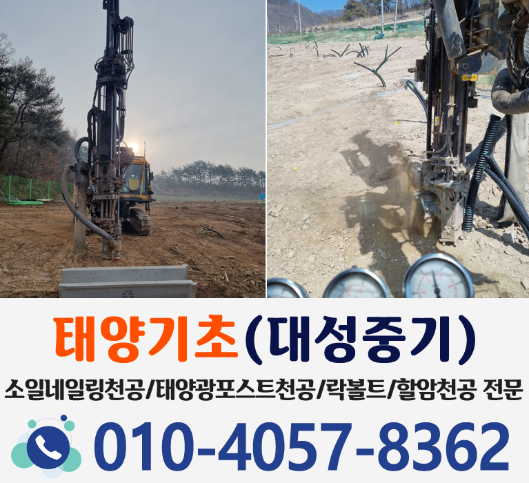 소일네일링천공, 태양광포스트천공, 쁘레카빈공천공, 할암천공전문, 락볼트천공, 태양기초(대성중기)